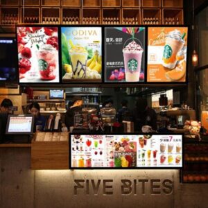 6. Thiết kế linh hoạt: Màn hình Menu Board có thể được thiết kế theo hình thức trải nghiệm khách hàng. Điều này cho phép tạo ra những trải nghiệm quảng cáo độc đáo và phù hợp với yêu cầu cụ thể của từng doanh nghiệp.